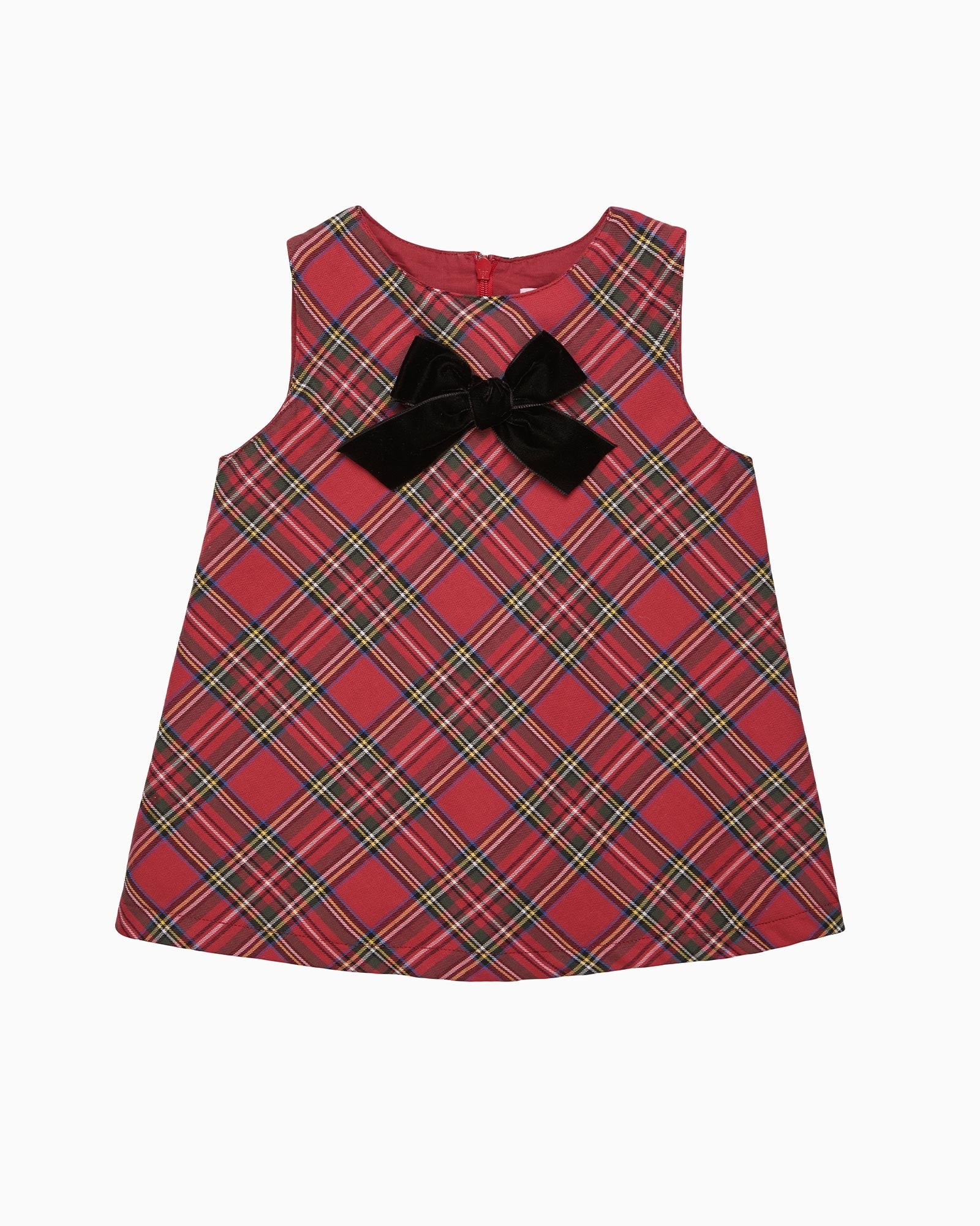 Now available in a festive red tartan, our Georgina dress is guaranteed to inject a bit of sophistication into their wardrobe this holiday season. Made in a smart pinafore shape and fully lined in 100% cotton voile, it features an elegant black velvet bow on the front for a chic finish.