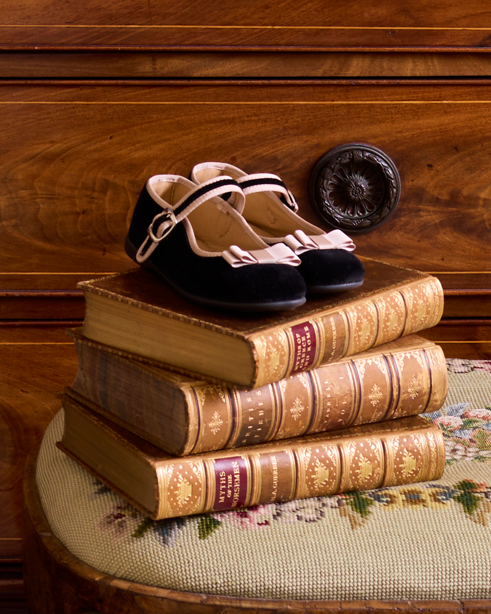 Presenting our luxurious Hampton Classics Lana shoes, the perfect combination of comfort and festive style. These show-stopping shoes boast a rich velvet upper, Mary Jane shape, buckle closure, and pretty grosgrain bow and binding embellishment. The ultimate party shoe, they’re crafted in Spain and available in three colours this season.